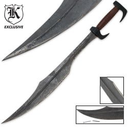 Make your own stand against the Persians! This is an exact replica of the sword carried by the famed King Leonidas and his 300 Spartans at the Battle of Thermopylae in 480 B.C. The heroic performance of these fierce warriors is remembered even today as a symbol of courage against overwhelming odds. We offer you the opportunity to relive the legend and to experience the power of this mighty sword. This sword measures 34 1/2" overall and breathes strength. The 26" heat-forged blade is heat tempered from solid carbon steel and is nearly an amazing 1/2" thick. The leather wrapped handle is contoured and surrounded by the distinctive extended guard and pommel. Relive the history of the Spartans with this sword in your hand!
